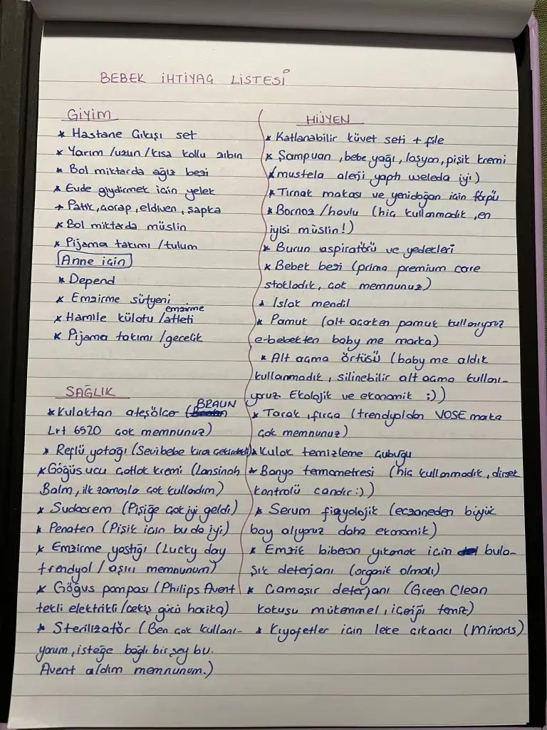 Ben de liste sözü vermiştim. Hamilelikte yaptığım listeyi şu anki kullanımıma göre güncelledim. Tabiki herkesin ihtiyaçları farklı olabilir, benim cok kullandığım bir şey bir başkasına gereksiz gelebilir .Unuttuğum listeye yazmadığım şeyler de olabilir 🙈 Ama belki bir fikir verir diye paylaşıyorum 💕