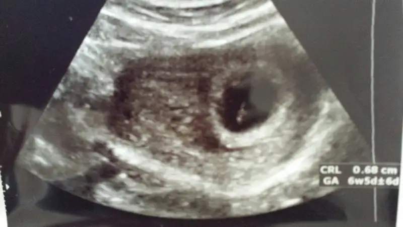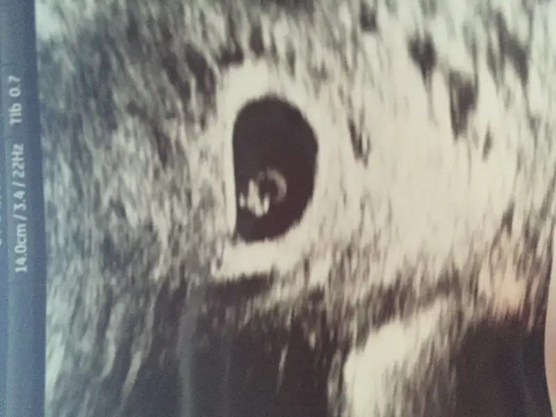 Burada 6 haftalıktı :)bu resimde baya büyük büyüdüğü içinde herkesinki gibi ortalara kaymış. daha eski ultrason görüntüsü varsa ona bakıp söylesek daha sağlıklı olur.