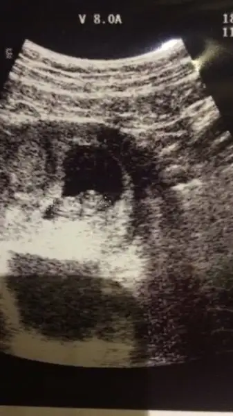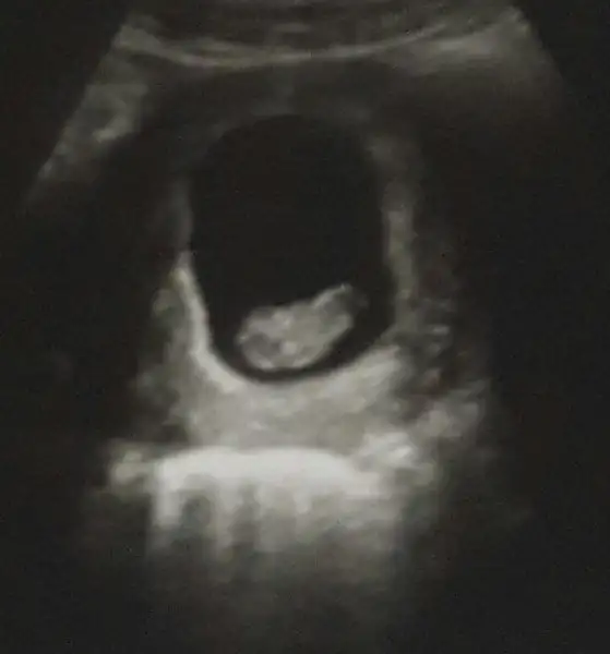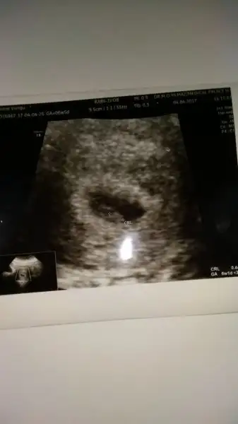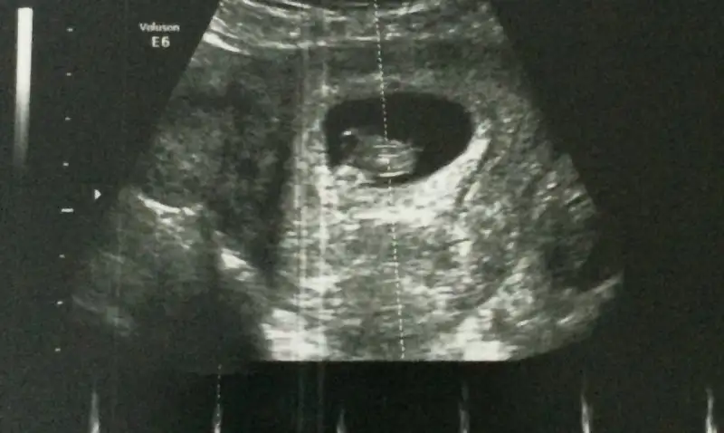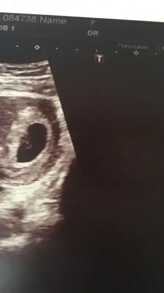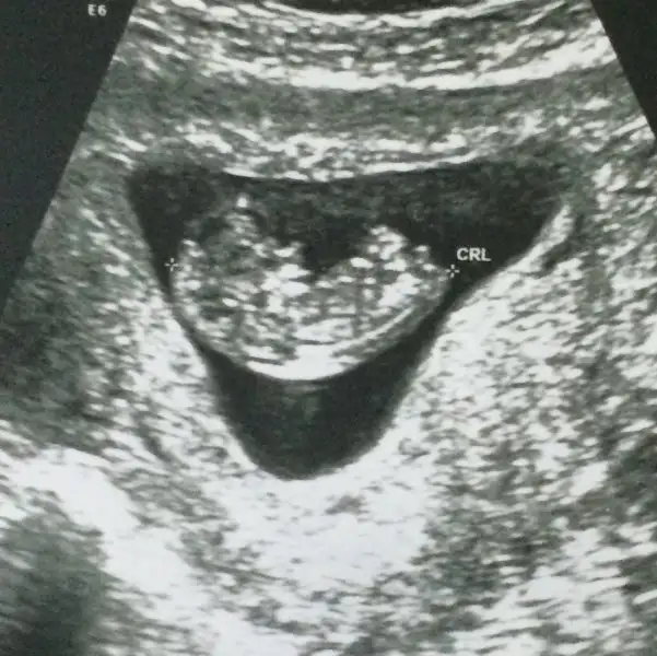 Karindan ultrasonda ilk foto 7 haftalikken 2. Foto 9haftalikken. Sizce? 7 haftalik olan fotoda yukarda gorulen beyaz bebek asagidaki yolk sac.