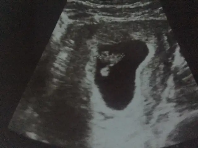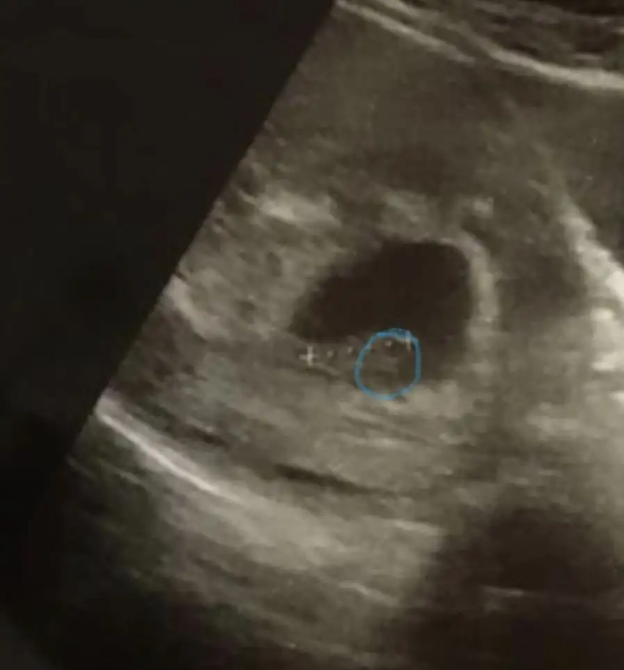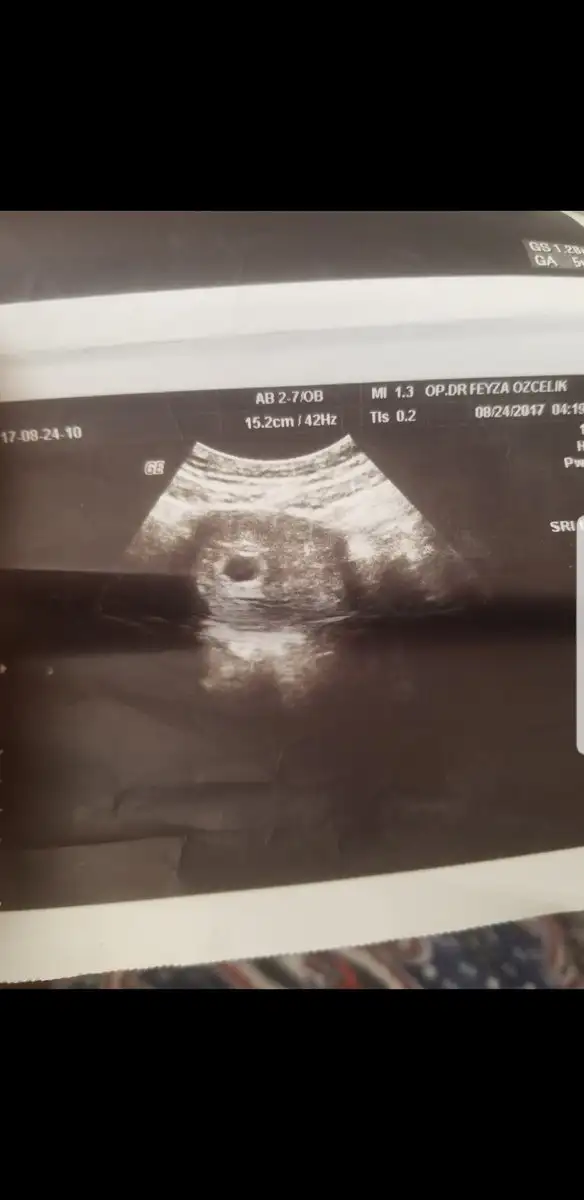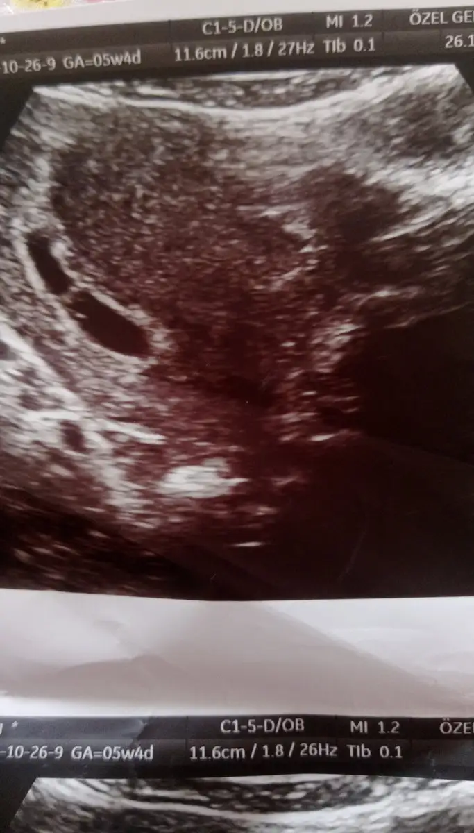 Merhabalar. Beş haftalıkken yuvarlak bir kesenin tam solundaydı ama 7 haftalıkken görüntü böyle ortada çıktı. Cinsiyet tahmini yapılabilir mi bundan da?
