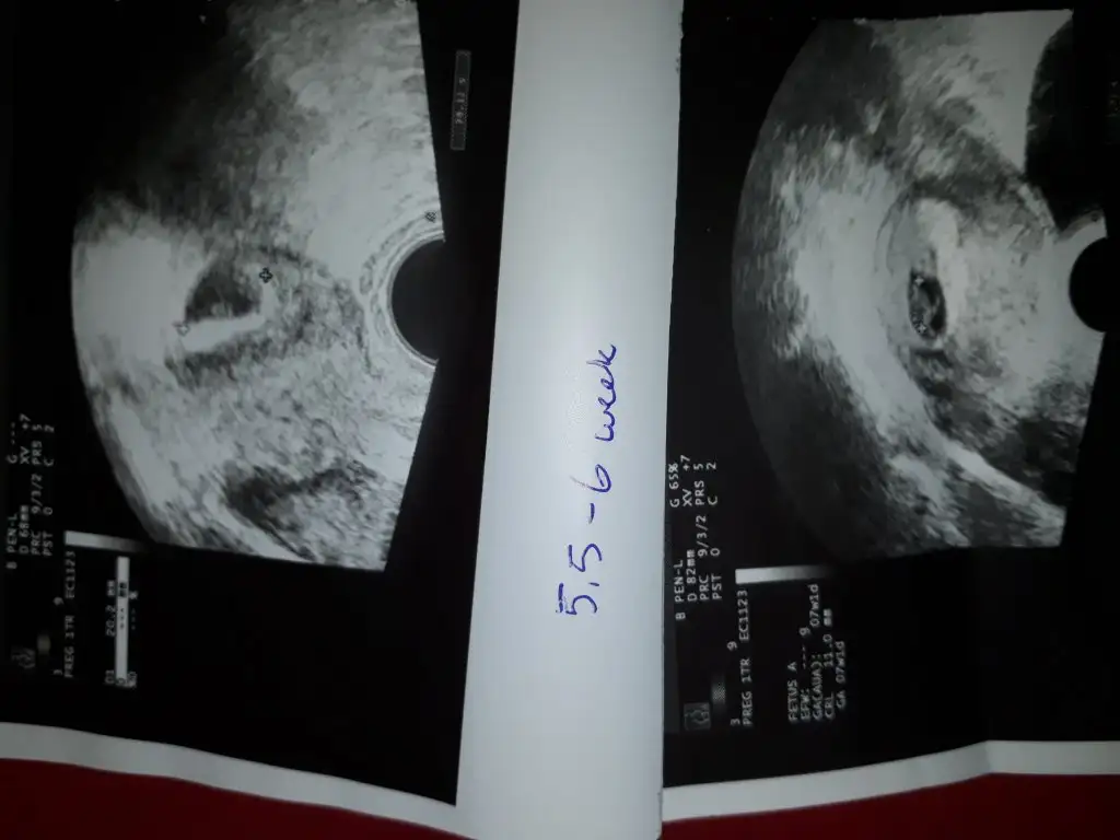 Bu benim 5.hafta vajinal ultrasonum ilk fotoğraftaki. altta 6. hafta diyor ama benim 1 hafta geç döllenme.