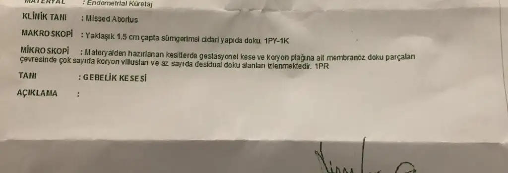 Patolojiden genelde birşey çıkmıyor canım.Gebelik kesesi ve ona ait şeyler görülmüş bir sıkıntı görünmüyor.Esas önemli olan genetik inceleme sonucu,onu istediniz mi