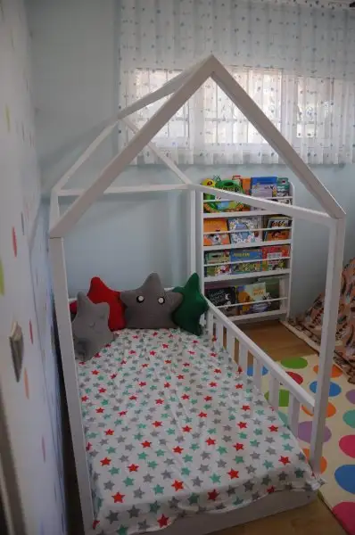 Ben de büyüyebilen yataklardan almıştım. 3 yaşında söktürdüm korkuluklarını şimdi tek kişilik yatakta yatıyor. Alıştı artık.Büyüyebilen yatağımız var,beşik bana gereksiz gibi gelmişti o dönem. Kızım 3 yaşını geçti hala yatağında yatar,telsiz kullandım ilk zamanlar,bazen onun odasında yattım hastayken,şimdi gerek bile kalmıyor,odalarımız bitişik,hık dese duyuyorum. Yaza büyüteceģim yatağını,korkuluklarıda çıkaracağım,öyle uyuyacak.