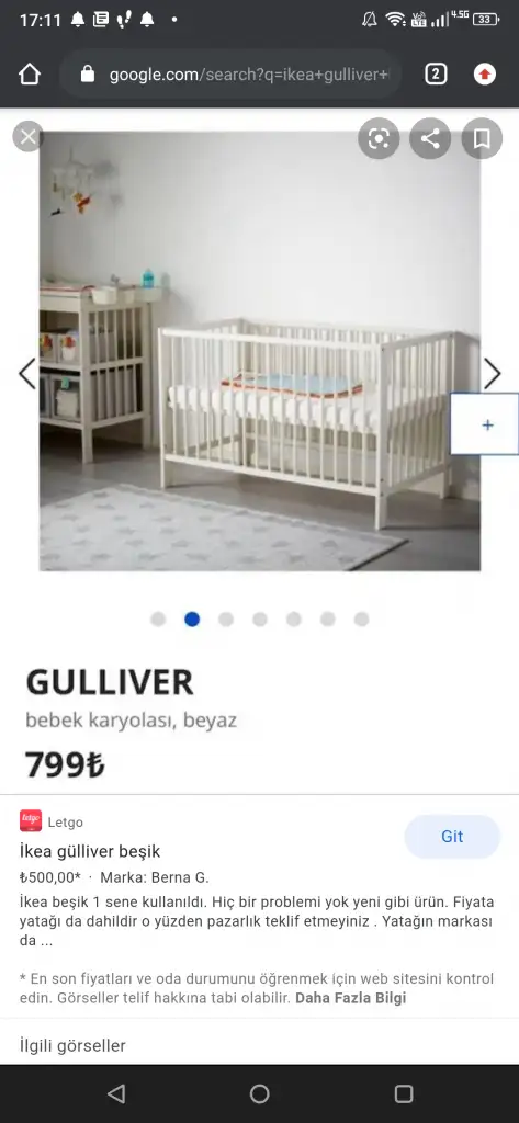 ikea gulliver serisi besik+yatak (sifiri yatak dahil 1200 civari ikinci el 500 tl)