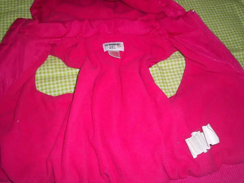 pembe yelek lcw 12-18 ay etiketli içi polar kapşonlu