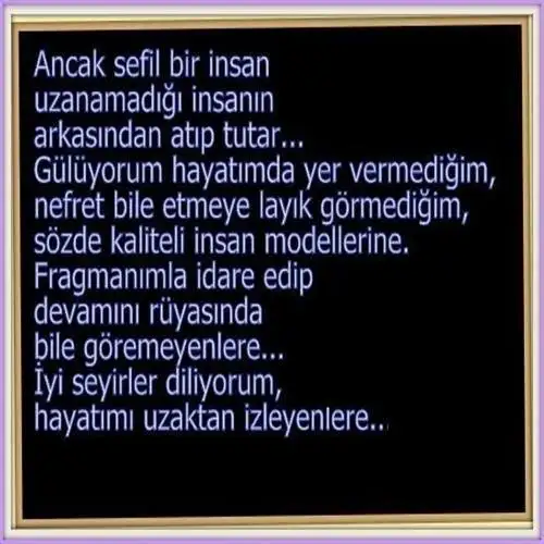 tamdem Düşüncemin geldiği yere git, kendine yer kap. Kayıtlı Üye 22 Mart 2014 2.133 3.564 248 7 Mayıs 2014 Konu Sahibi Konu Sahibi Nevreste #33 Ahmak olmasaydin insan; Tüm zaferler dostca kazanilirdi...
