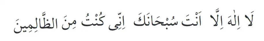Arapça okunuşu: Lâ ilâhe illâ ente subhâneke innî kuntu minez zâlimîn(zâlimîne).”