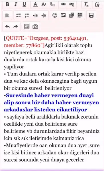 Tmmdir tesekkueler öğrendim. Bundan sonra elimden geldiyince yaparım inş AllahCnm cevapla veya alintila yaptiginda assagidaki gibi kirmizi isaretledigim kisimlari silip nickin yanina okundu yazinca normal liste seklinde oluyor onlari silmeyince alinti oluyor