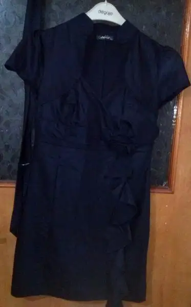 9-Lacivert renkte, ön kısmı düğmelerle hareketlendirilmiş şık elbise, 38 beden: