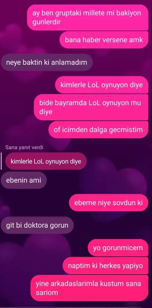 Kendisi de küfür etmiş. Yaşını büyütüp yazmış bence ya, fotolardan belli küçük olduğu.Ben utandım adınıza 19 yaş da böyle şeyler için biraz fazla geldi bana. 13 14 civarı olduğunuzu düşündüm.