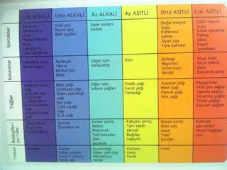 sizin de izniniz olursa bir tablo ekliyorum başlığa. alkali ve asitli besinlerle ilgili. zaten tablo incelenince alkali besinlerin ne kadar faydalı olduğu görülecektir.