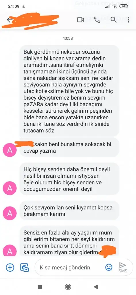 Sizide sıkıyorum biliyorum aranızda bana sık konu aciyosun diyenler var . .aileme eşimle ilgili bişi anlatmıyorum etkilenmesin bana yuvani yıkma demesin diye . oyuzden sizinle konuşmak beni rahatlatıyor biraz da gücleniyorum ,hepinizden Allah razi olsun ,,,, dün çocuğu görmeye geldi kapının önünde bı 10 dakka sevdi falan tek kelime konuşmadım yanindada durmadım zaten annem falan görmüş agliyomus çocuğa sarılırken .tabi benim annem o ağlamış diye annemde ağladı sanki dersin annemin oğlu ben böyle bişi görmedim,,, bugün bana yine mesajlar falan atmış cevap vermedim ,,, canım çok sıkılıyor o arayınca mesaj atınca, yaptıkları aklıma geliyor defalarca yeminler sözler verip sonra yine başa sarmasi ,benim ona zaten güvenim kalmadı.imkansiz artık bizim bı araya gelmemiz,,,ama o bana bela olucak gibi duruyor, işler elimden geldigince kötülessin istemiyorum,,o bana zarar vermeye kalkismadigi sürece bende vermem yeterki yolumdan çekilsin ,yemin ederim dua ediyorum kendi gibi birini bulsun aşık olsun diye ,belki bu şekil düşer yakamdan ben çivi çiviyi söker mantığına inanıyorum....bazı arkadaslarim bana hiç korkmuyosun ya kendine zarar verirse diye falan soruyorlar(bikerede boğazına bıçak dayamisti kendini kesicekti kapıdan ciksaydim o an korktum afalladim kaldım evde) .ama artık korkmuyorum ölüm onun için bı kurtuluş enazindan gider mezarına dua ederim oğlumla,,,biz onunla birbirimizi çok sevmistik gerçekten çok sevdik , benim onu o şekil kabul etmicegimi biliyordu ben ona demiştim madde kullanma diye.onun yolu belli ,ben o yoldan gitmek istemiyorum enazindan oğlum için çocuğuma kötü bir örnek olsun istemiyorum ,çünkü biz evde hergun kavga kıyamet oluyordu bu madde yüzünden .oğlumu oyuncak larinin olduğu odaya koyuyordum korkmasın bizi öyle görmesin diye.ben şimdi yüzümde güller açıyor ama o aramayana kadar mesaj atmayana kadar .o atınca icimi bı huzursuzluk kaplıyor.ben nasıl onu nasıl kendimden vazgecirebilirim siz söyleyin.yeterki söyleyin konuşalım gerçekten ruhum daralıyor benim...Eki Görüntüle 2632748