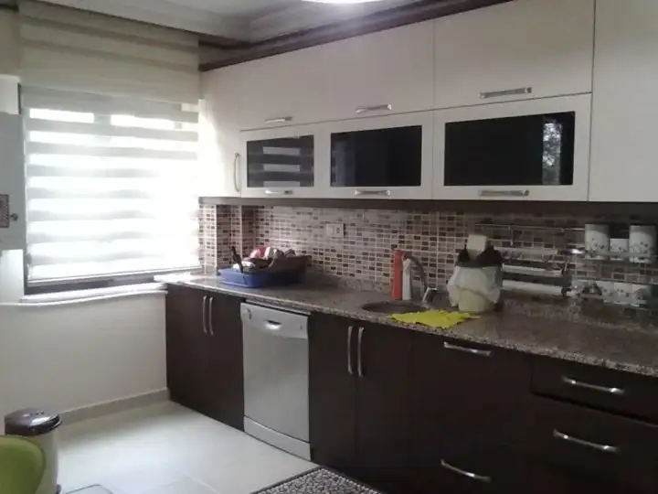 Canım fotoda siyah durmuş ama değil.koyu kahve daha doğrusu venge.üst de krem.biz evi aldığımızda böyleydi.kullanışlı bu haliyle.ama ben olsam açık renklerden yana kullanırdım tercihimi.hem daha ferah hem de temizliği kolay.Sen bilirsin ama siyah pek kullanışlı gelmiyor bana.Evin çok güzelmiş güle güle kullan benim bir sorum olacaktı ,mutfak alt kısmın siyah bu kullanışlımı yoksa leke görünüyormu ben henüz dolap yaptırmadım ama mutfak biçimin benimkiyle nerdeyse aynı bende öyle düşünmüşmüştüm ost beyaz alt siyah olsun diye kullanışlımı acaba ?yoksa alt beyaz olsaydı nasıl olurdu?