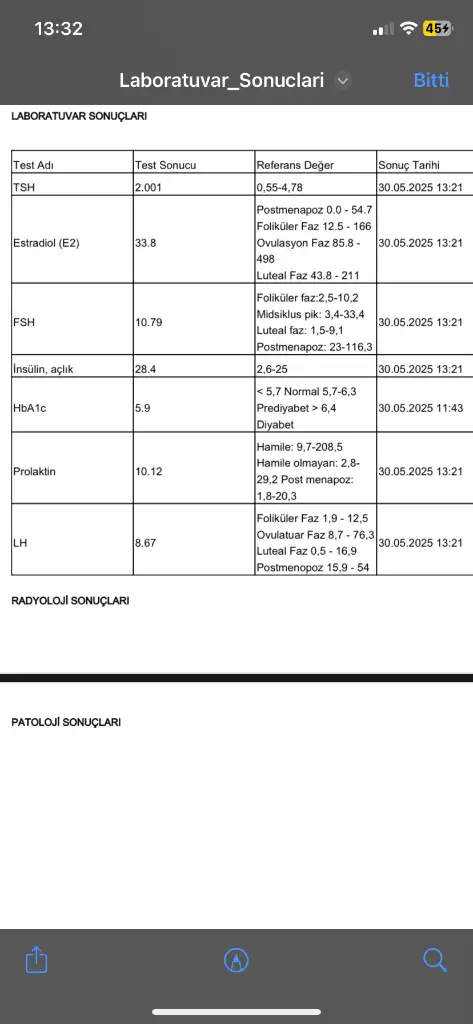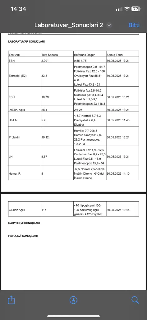 inşallah en kısa zamanda güzel haberler alırsınfsh ve insülin dışında bir sorun görmedi doktor yani bahsetmedi ama diğer sonuçlar bunlar