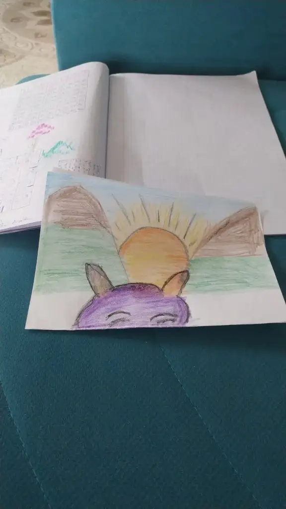 O mor olan aslında kızımın cizecegi Pokemon imiş de ben onu kedi mi tavşan mı deyip kendi resmimin içine kattım, başka bi yaratık olarak kullandımO mor olan kurt mı