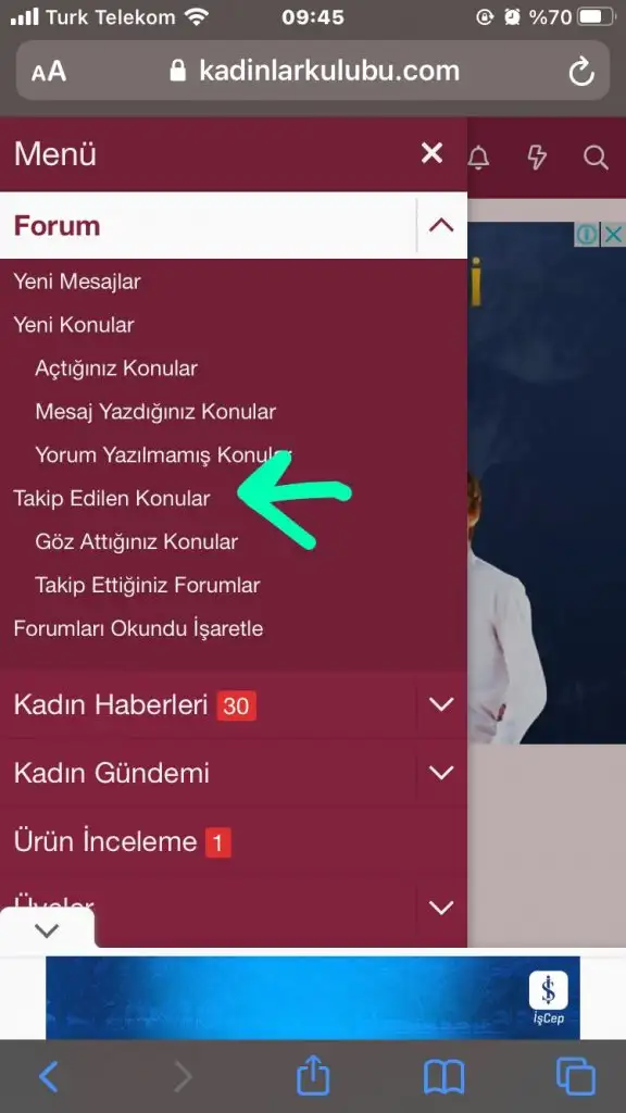 Herseyin hayirlisi kuzum benim evettBen şurayı keşfettim abla son zamanlarda iyi işime yaradı burasıkadınlar kulübünün her stilinde yok sanırım ama sol üstte 3 çizgi var oraya giriyorum hemen bu açılıyor takip ettiğim konuları buluyorum ordan