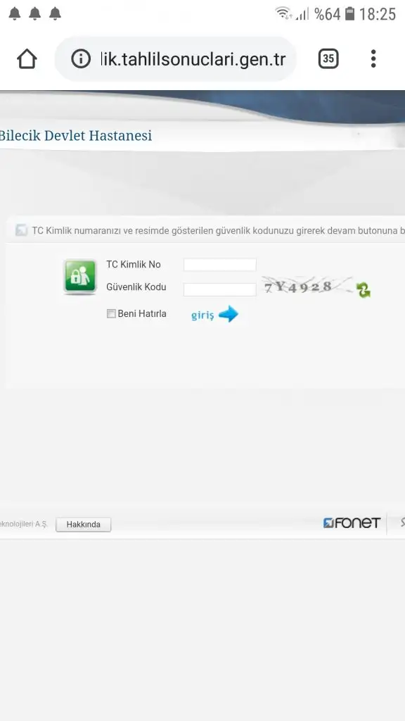 Olmaz canim o bir hastanenin sayfasina girip baksana labaratuar sonuclarina bak ne numarasi istiyo senden belkide sadece tc falan ister