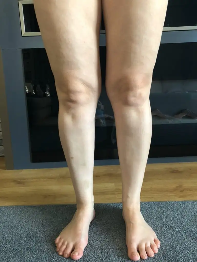 Sol bacağımın görüntüsünden memnunum şimdilik. Sağ bacağımdan ise endişe duyuyorum çünkü diz iç kısmı daha çıkık sola göre.Dizimin iç tarafından da yağ alındı ama yetersiz gibi yada şişlik var halen. Varis çoraplarını 2 hafta giydim. Bana süre yetersiz gibi geldi. Şimdi ara ara ben varis çorabı giymeye devam ediyorum. Yada göğüs bandını sağ bacağımın üstüne doluyorumşişlik insin diye. Transfer edilen yağların az olduğunu düşünüyorum. Yüzde 40 yada 50 sinin eridiği söyleniyor genelde. Bakalım 5/6 ay sonra nasıl olacak. Karın germe ameliyatımı sırf bacaklarım için oldum. Umarım pişmanlık duymam ve bacaklarım doktorumun ön gördüğü şekilde bu süreçte şekillenir. Dizlerimdeki donukluk hissi halen devam ediyor . Yatağa bile değse diz iç kısımları sert bir zemine değiyormuşum gibi.
