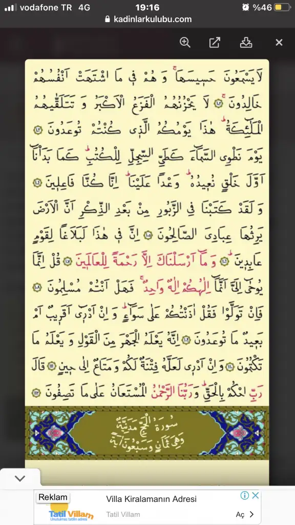 Benim içinde enbiya suresinin son sayfasını okurmusunuz