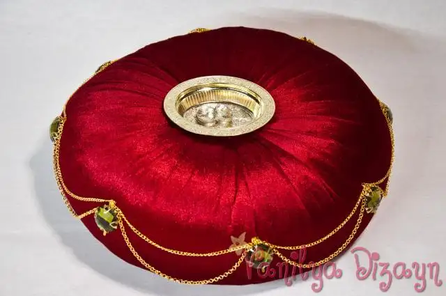 Ve kına yastığı, ayrıca bu yastığın tepsisini de aldım