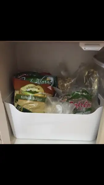 Begendigim seri cok güzel toplamis bunlari acikta hayal edemiyorum.İkea buzdolabi poseti alabilirsin kavanozdan artanlar icin ideal.İkea kutularım sepetlerim geldi :) eve geç geldik hepsini yapamadım ama yatana kadar yaparım bir şeyler sadece bir dolapta kavanozlara sığmadığı için kalan bakliyatlar falan vardı onlar için aldığımı yerleştirdim çok içime sindi derli toplu oldu :)
