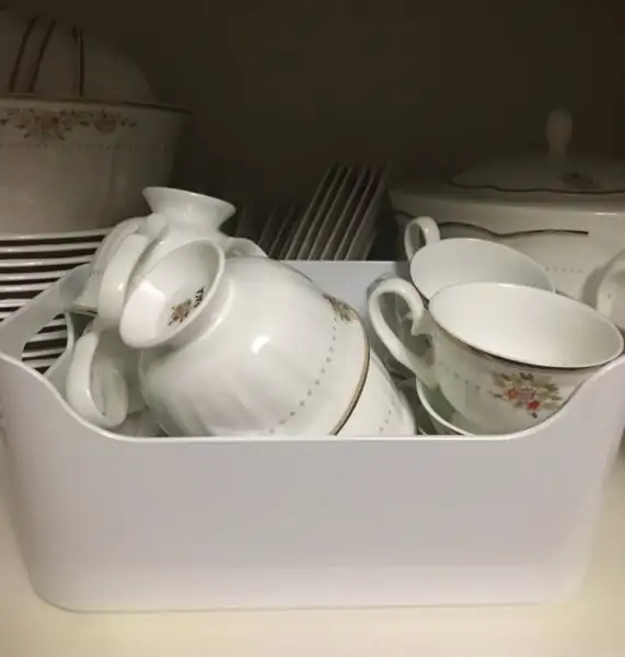 Yemek takımının fincan tabakları çok büyük ve rafta çok yer kaplıyordu onları kutulara aldım. Derli toplu oldu :)