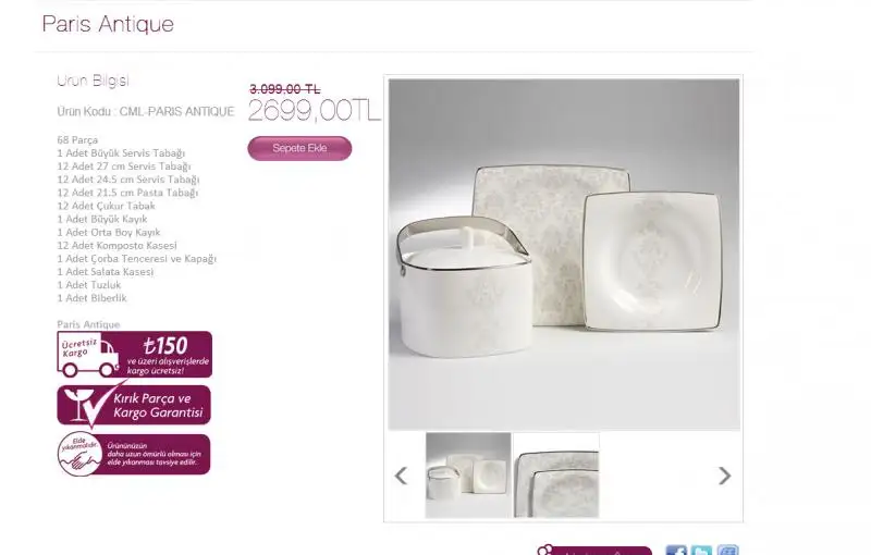 yemek takımına 1.000 tl nin üstünde vermek gerçekten maktıksız..