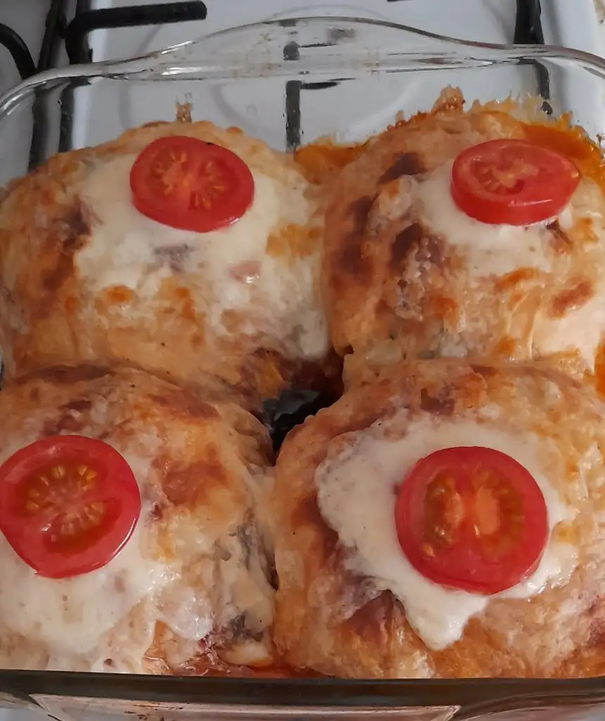 200 Derece fırında kızarana kadar pişiriyoruz. Kızardıktan sonra rendelenmiş kaşarı üstüne serpip eleyene kadar fırında tutuyoruz.