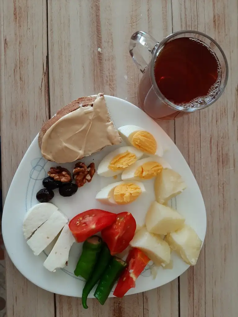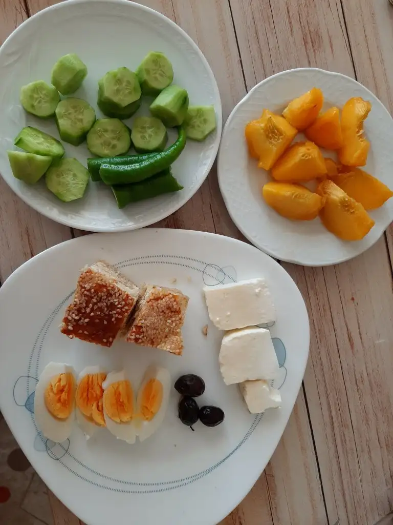 Ben de tahıl topping+yoğurt, haşlanmış yumurta, çiğ çerez, siyah kuru üzüm, salatalik, kapya ve yeşil biberle kahvaltımı yaptım. Üzerine sade Türk kahvesi ve bitter çikolata... Keçiboynuzu unu+su ara öğün. Kefir, ceviz, meyve üçlüsü ile öğlen yemeği. Yeşil çay. Akşamki planımda da fırında kabak kızartması, et sote, sarımsaklı yogurt var.