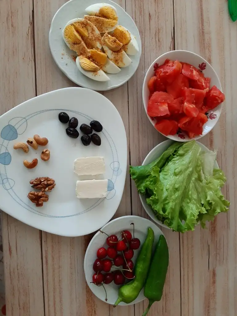 Afiyet şifa olsun ablacımKahvaltıda marul, yeşil biber, maydanoz, granola, süt, haşlanmış yumurta, çiğ çerez, siyah kuru üzüm yedim...