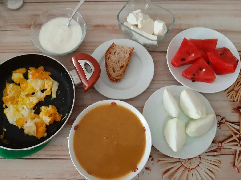 Öğlende de karpuz ve beyaz peynir yerim.