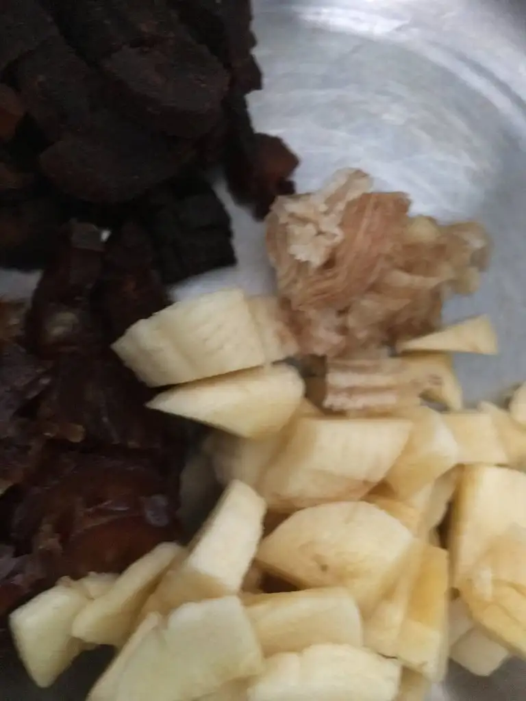 Muzun kabuğunun içindeki katmanı da bir kaşık yardımıyla sıyırıp hepsini tencereye koyuyoruz.(Bunun sebebi kabuk magnezyum ve potasyum açısından çok zengin bu da uyku bozukluklarına iyi geliyor)