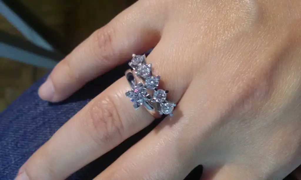 Görgüsüzlükle hiç alakası yok. Aslında arkadaşınız doğru olanı yapmış. Beştaş, yeditaş ve tam tur pırlanta yüzükler, pırlanta 'alyans' anlamına gelir, pırlanta alyans olarak satılır. Kimisi nasıl altın alyansıyla tektaş yüzüğü birlikte takıyorsa, kimisi de tek taş yüzüğüyle beraber altın alyans yerine beştaş, yeditaş ya da tam tur pırlanta yüzüklerden birisini takar. Usül budur. Bir de altın alyansla birlikte beştaş, yeditaş veyahut tamtur pırlanta yüzüklerden herhangi biri aynı anda takılmaz. Mantıken takılan iki yüzük de alyans anlamı taşıyacaktır çünkü.