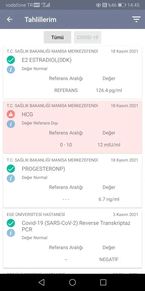 Merhaba bayanlar 5 kasım 2021 dondurulmuş embriyo transferi yapıldı tahlil tarihimiz 19 kasım ama ben bugün test yaptırdım sonuçlarım beta hcg 12 çıktı sonuçlarım ekte bu duruma benzer durum yaşayan varmı kalbim çok acıyor 5. Denemem yarın tekrar kan vereceğim Allah rızası için bilgilerinizi paylaşın lütfen