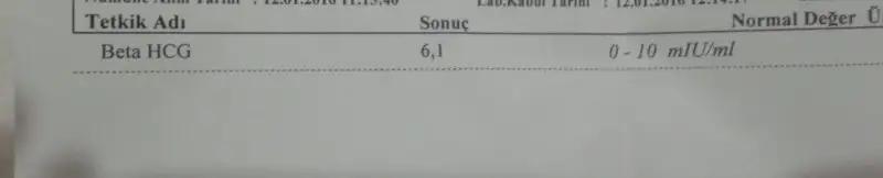 Kuzeniminde hep 0lı çıkıyodu ilk kez böyle bişey çıkmış ve şaşkın üstelik adette olmuş ama üstüne görülmeden şüphe ediyo herşey nefatif gibi gözüküyo ama moralini bozmak istemiyorum tekrar kan testi yaptır dedim bendetabıkı allah bılır...ama normal deger 0 5 arası....bazı labaratuvarlar 0 10 arasını baz alıyor...benım ıkı dusugum var...cocugum suan yok...ılkı kendılıgınden oldu...gelısmedı dustu ozaman degerım 800 lu bıseydı....ıkıncı ıse tup bebek dedıgım gbı 5.88 ıle 45 e yukseldı sonuc onuda kaybettım....ama oncesı vs sonrasında benımde suphelı oldugum durumlar oldu sonucum hep 0 cıkıyodu kan testınde.