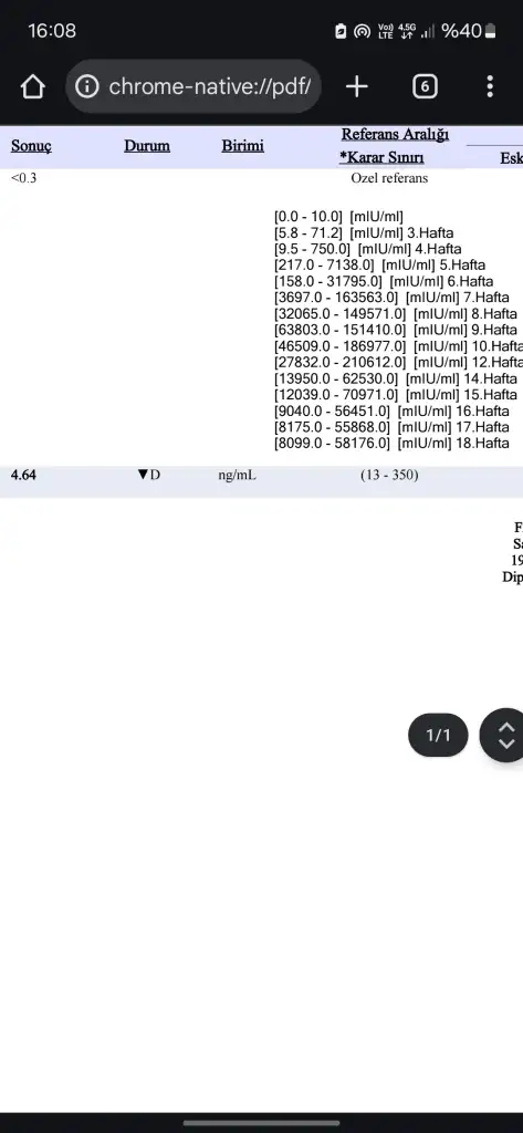 Yok o ferritin değerinin sonucu 0.3 çıkmış beta normalde dün olmam gerekiyordu olmadım hâlâ4,64 di mi sonuç? Adete kaç gün var