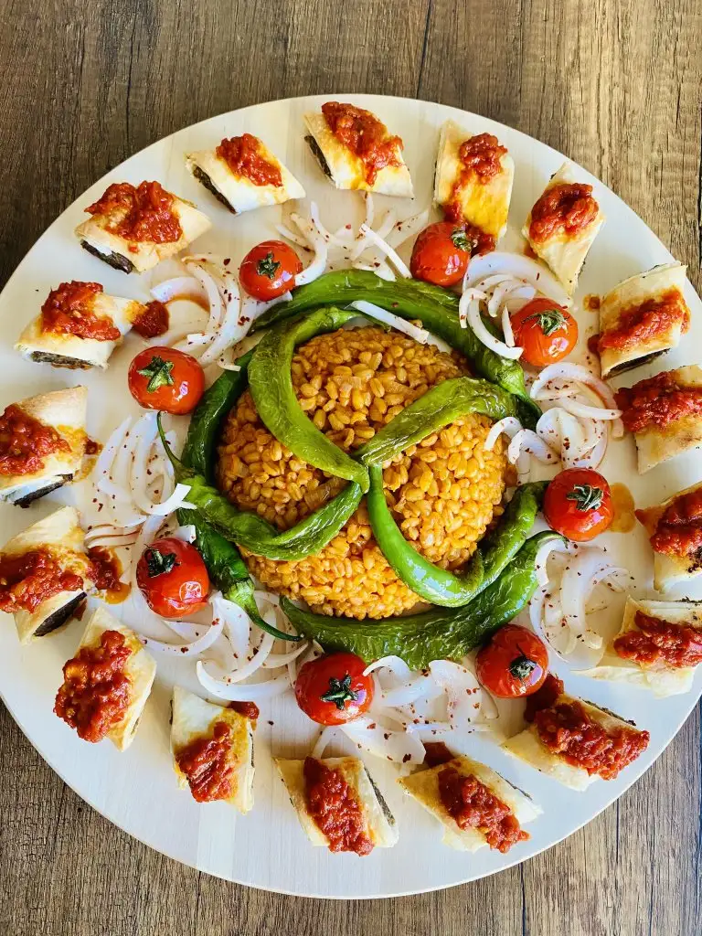 Eki Görüntüle 2674977 Yapilisa once kofteden baslayalim. Ben sogan ekmek ve sarimsagi robotta cektim sonra kiymaya kattim yumurta ve baharatlarida katip kofteyi iyice yogurdum. Sonra buzdolabinda biraz dinlendirdim. Daha sonra ince uzun bir sekil vererek tepsiye dizip 15 dk kadar firinda kofteyi pisiriyoruz. Yufkalari ortadan ikiye kesip firca ile yagliyoruz kofteleri bas tatfa koyup rulo seklinde sariyoruz. Daha sonra verev olacak sekilde kesip tepsiye diziyoruz. Uzerine tekrar firca ile tereyagi surup firinda kizarana kadar pisiriyoruz. Ust sosu icin domatesi rendeleyip yag saca ve tuzla kivam alana kadar pisiriyoruz. Sunum sekli size kalmis :)