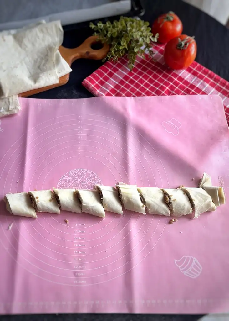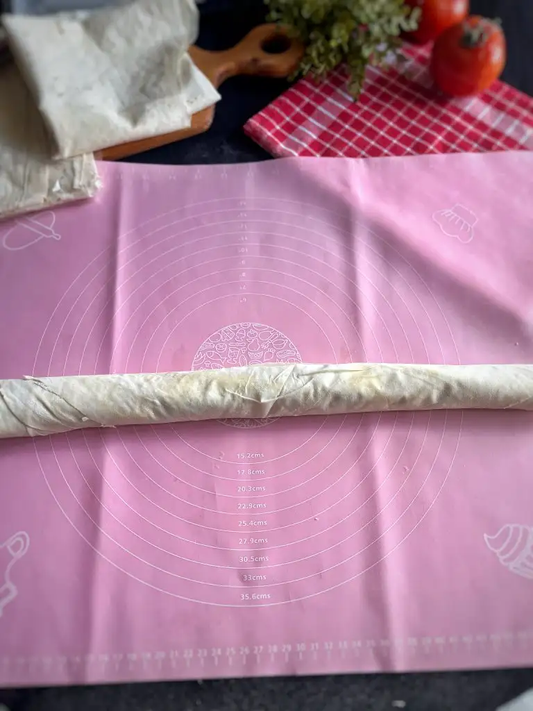 Tekrar tereyağı gezdirip kenar kısımlarını içe katlayalım.