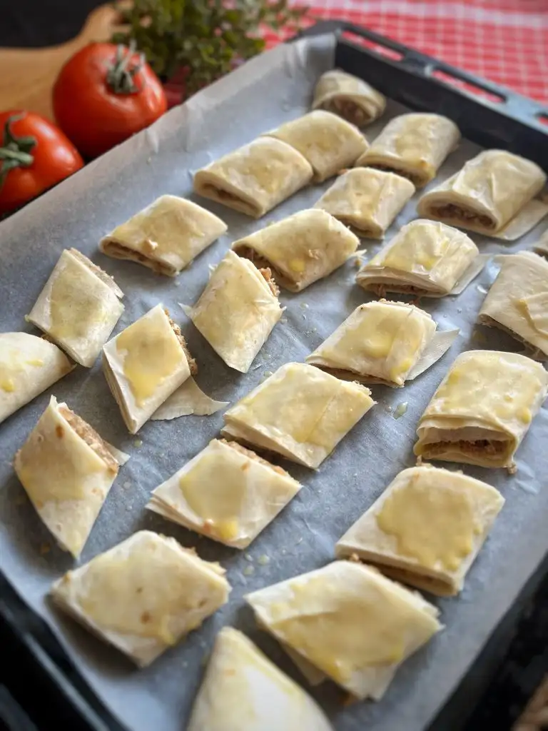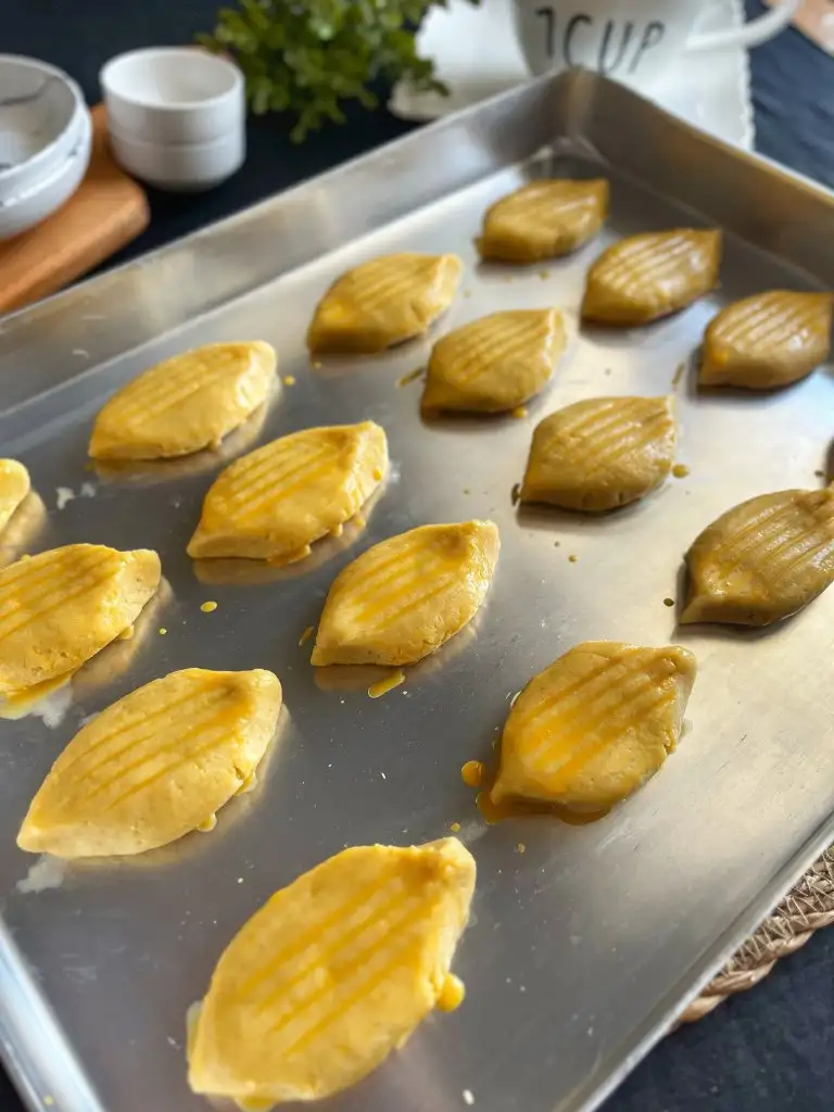 Yumurta sarısı ve suyu karıştırıp çift kat olacak şekilde üzerlerine sürelim