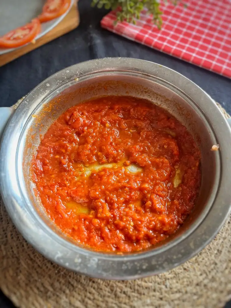 Domates sosunu tavada pişirelim.