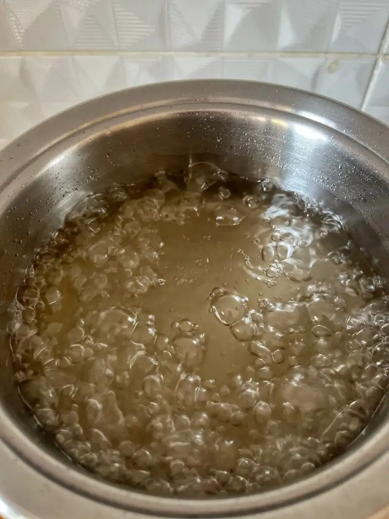 Şerbeti için tencereye şekeri ve suyu ilave edelim. Kaynamaya başladıktan sonra 6- 7 dakika kaynatıp ocaktan alalım