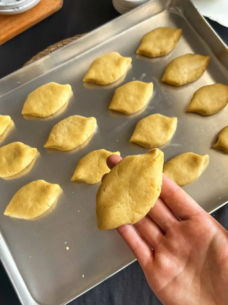 Ardından cevizden biraz büyük parçalar alıp elimizle şekil verelim