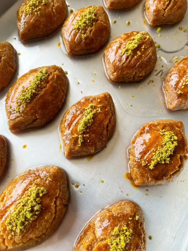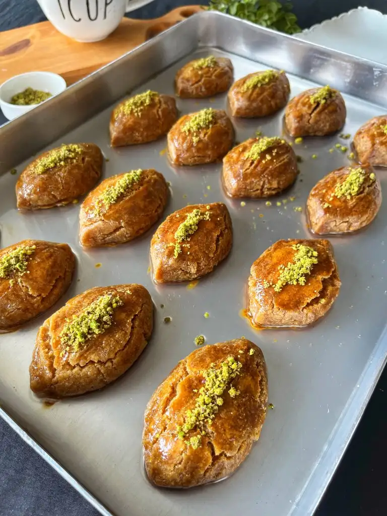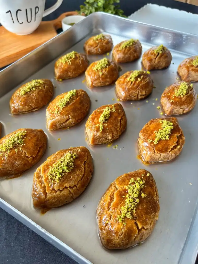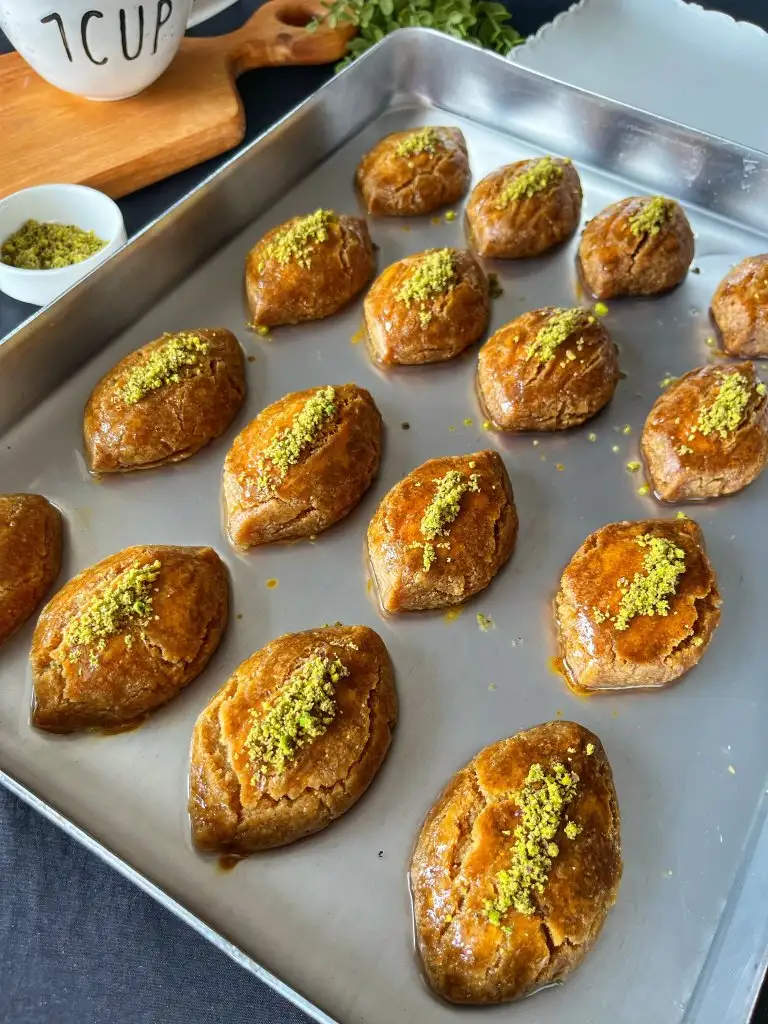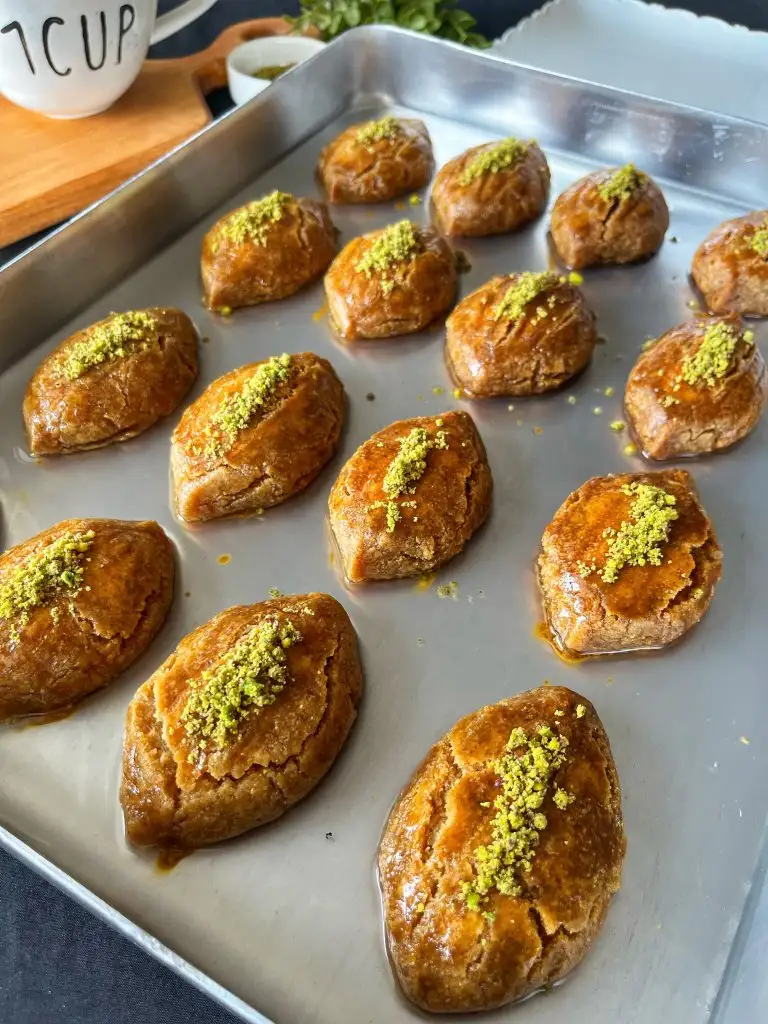 Pişen tatlıyı fırından alıp 5-10 dakika ilk sıcaklığı geçtikten sonra soğuk şerbeti üzerine dökelim