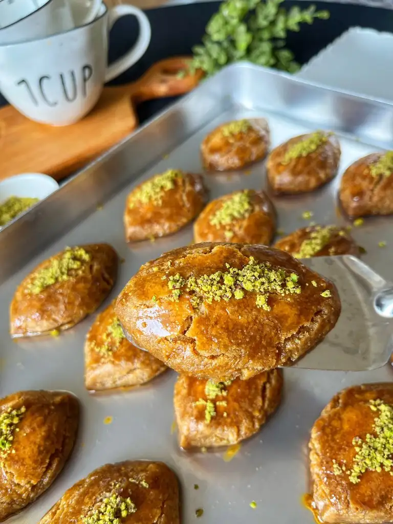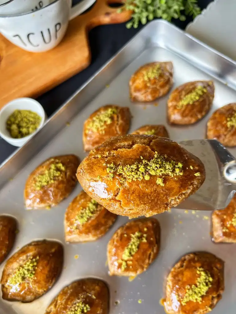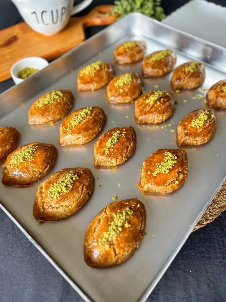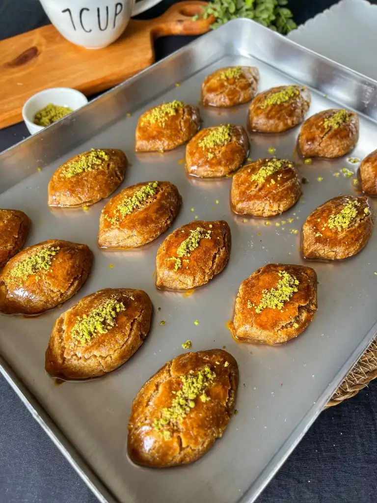 Verev şeklinde kesip tepsiye dizelim.