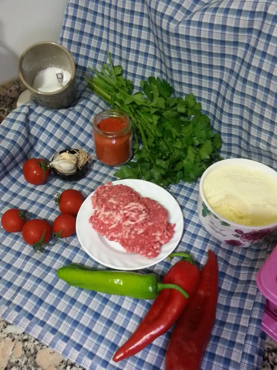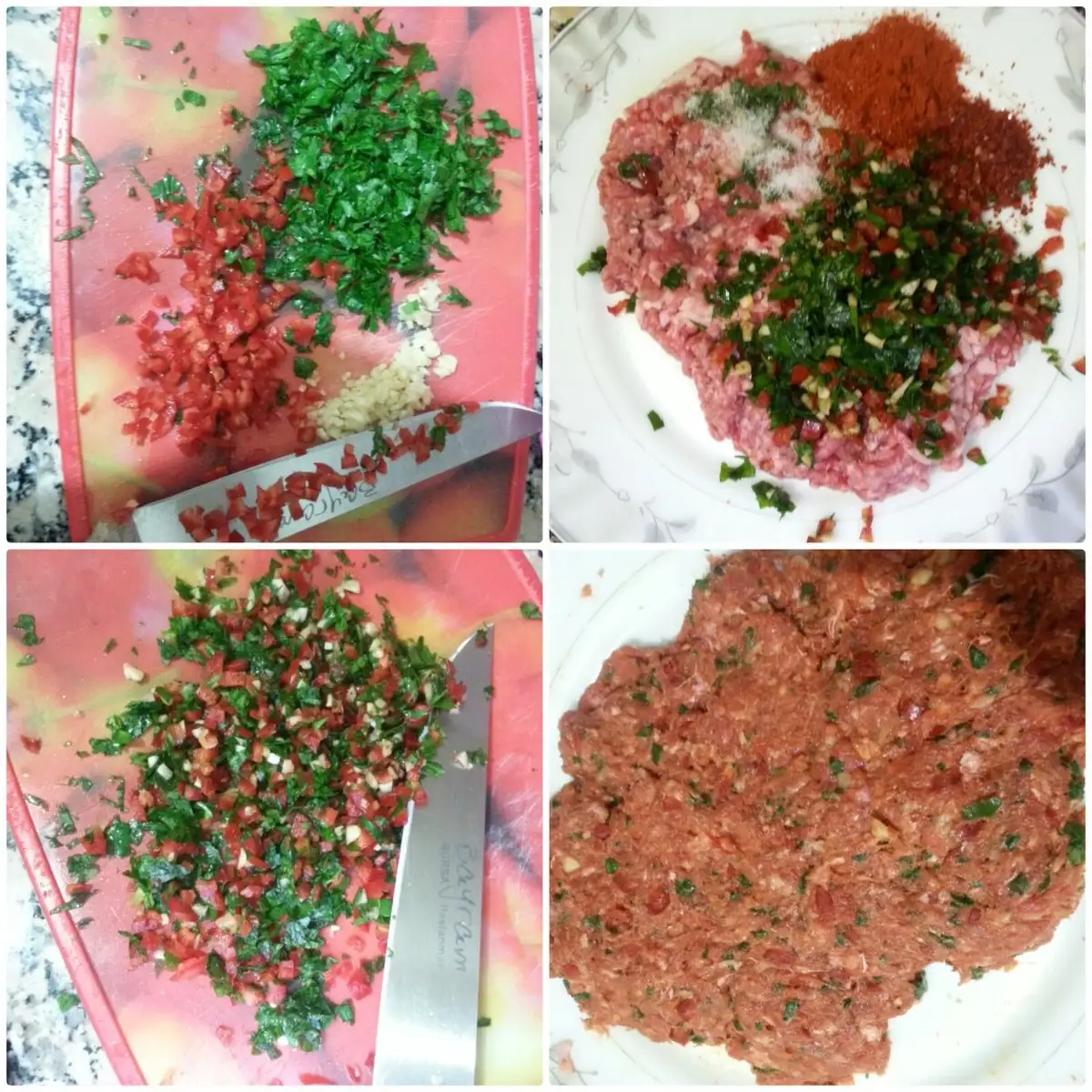 Öncelikle maydonoz, sarimsak ve kapya biberi olabildiğince ince kiyalim. Kiymayi uzerine ekleyelim baharatlarida ekleyip yoguralim. Uzerine strec film cekip dolapta dinlendirelim.