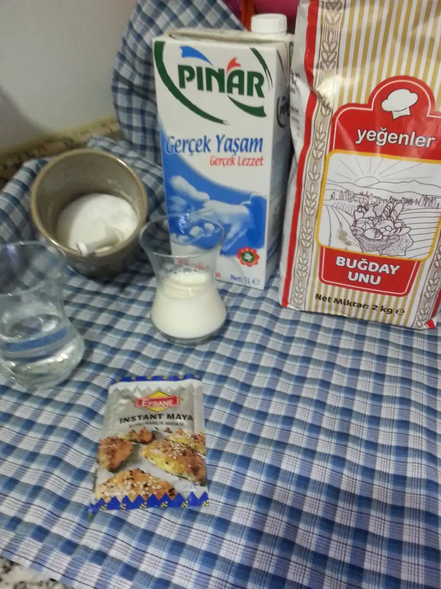Hemen ardindan lavasa gecelim. Su sut maya şeker ve tuzu bir kapta karistiralim. Unu kontrollu ekleyim. Yumuşak kıvamlı bir hamur elde edelim. Yine uzerine strec film cekelim ve dinlendirelim.