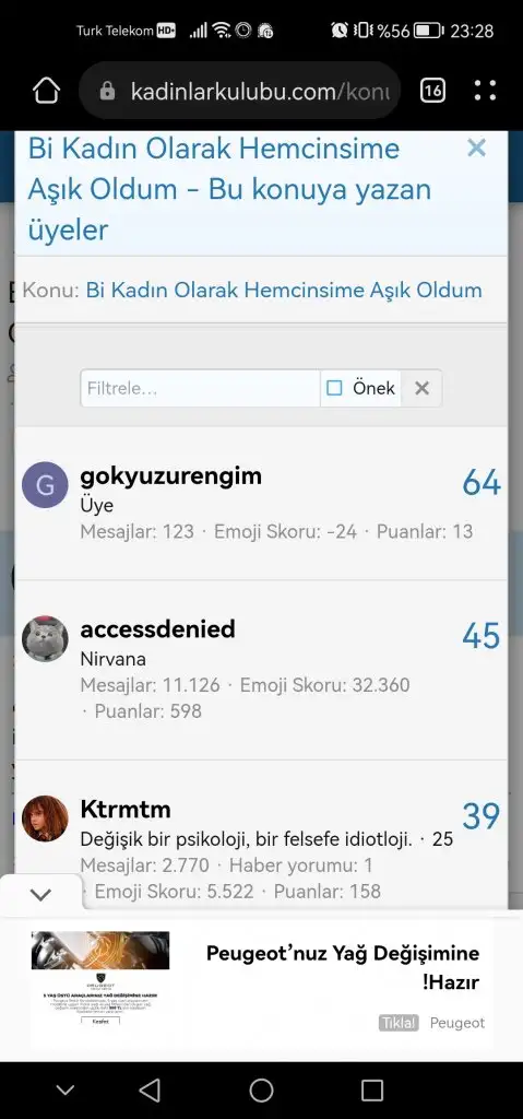 64 mesaj yazmış ya hu. Altmış dört.Psikolog değilim tam tanı koyamam ama var bir sıkıntı. Sadece dalga geçiyor diyip geçilecrk bir mevzu değil, kız ya da erkek her neyse uzattıkça uzatıyor. Yani insan bir süre sonra bıkar. Konu sahibi yazmıyor ama kendisi konuyu deli gibi sahiplendi. Diyorum ya insan yuh ya der yeter artık insanlarla bu kadar alay etmeyeyim kendimi küçük düşürmeyeyim. Zamanım da kıymetli der.