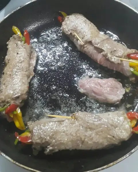 Sotelenen biberleri sigara böreği sarar gibi bi nevi :) açtığımız etlerin içine koyup sarıyor ve açılmaması için kürdanla tutturuyoruz biberlerin yanlardan görünmesi daha hoş bir görüntü veriyor dilerseniz içine kaşar peyniri ve mantarda ekleyebilirsiniz