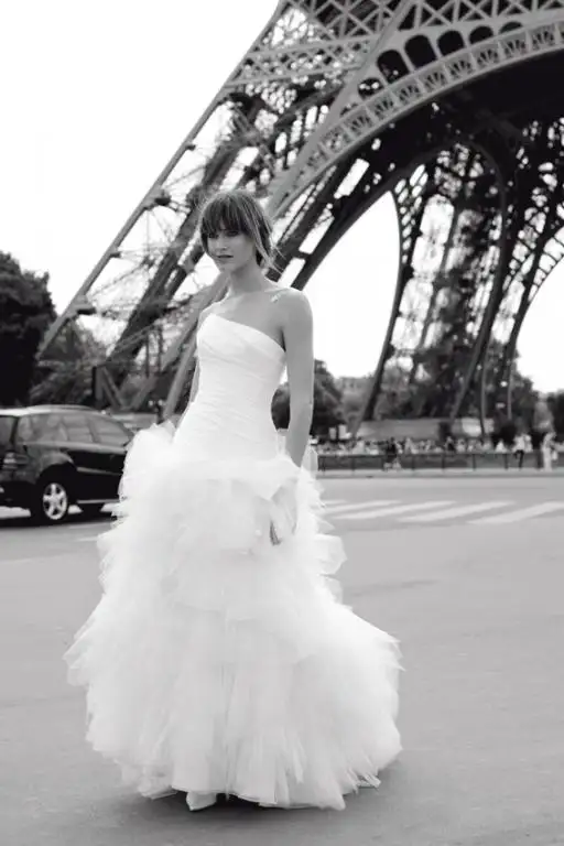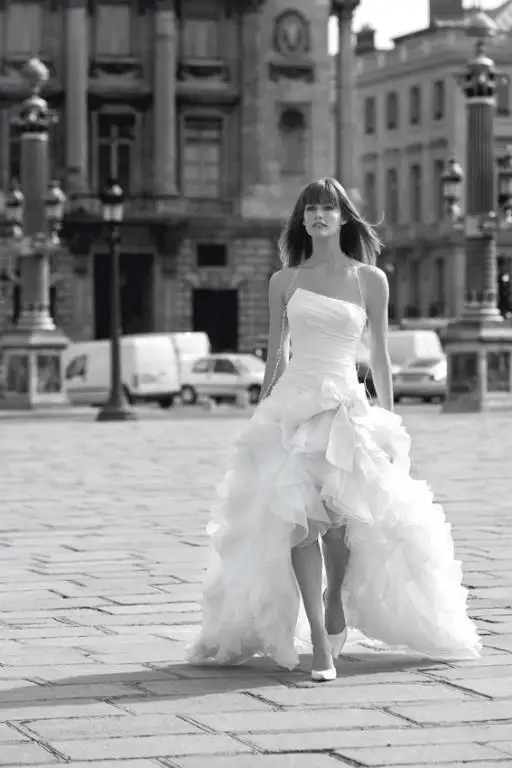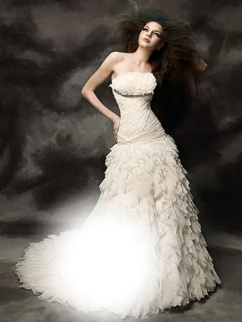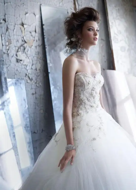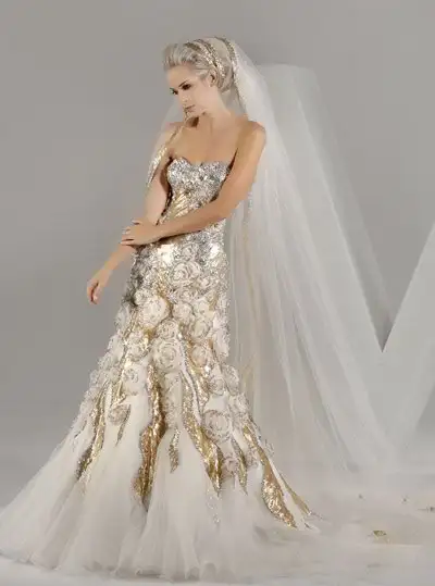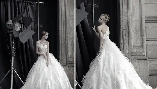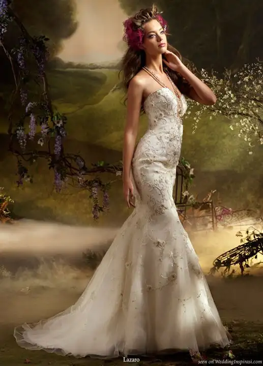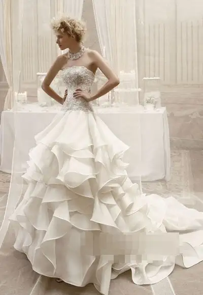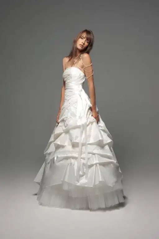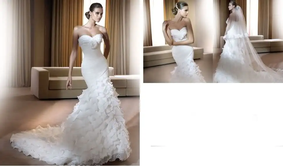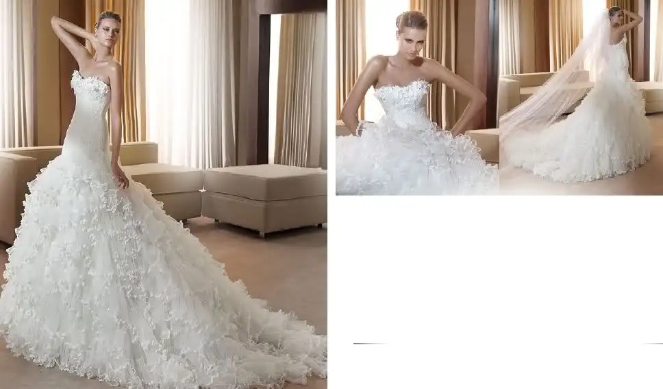 693. fotoğraftaki gelinliğin rengi ve kumaş türü nedir?