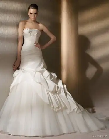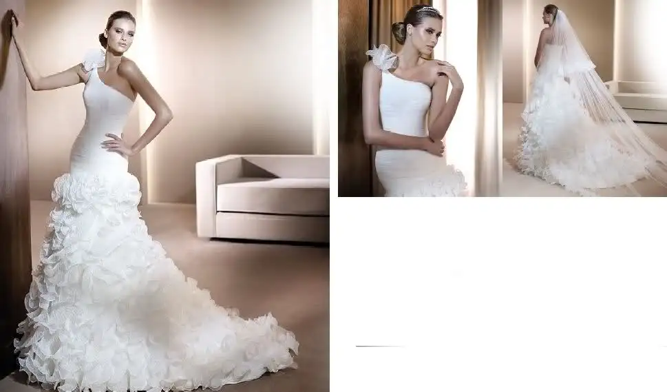 693. fotoğraftaki gelinliğin rengi ve kumaş türü nedir?